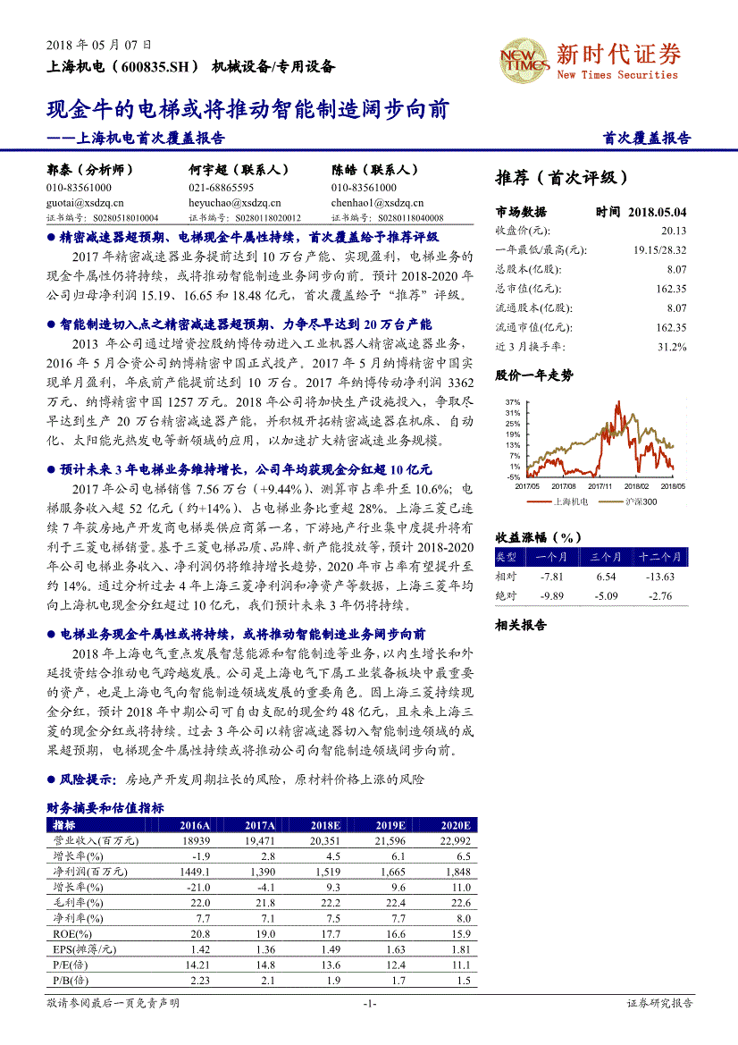 2018-05-07上海机电 -17-证券研究报告免责声明新时代证券股份有限公司经中国证券监督委员会批复,已具备证券投资咨询业务资格。